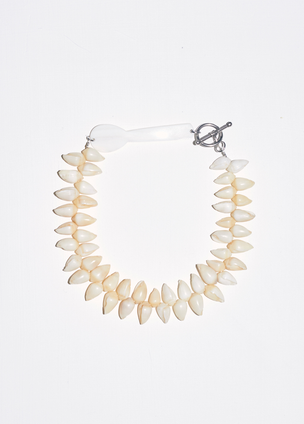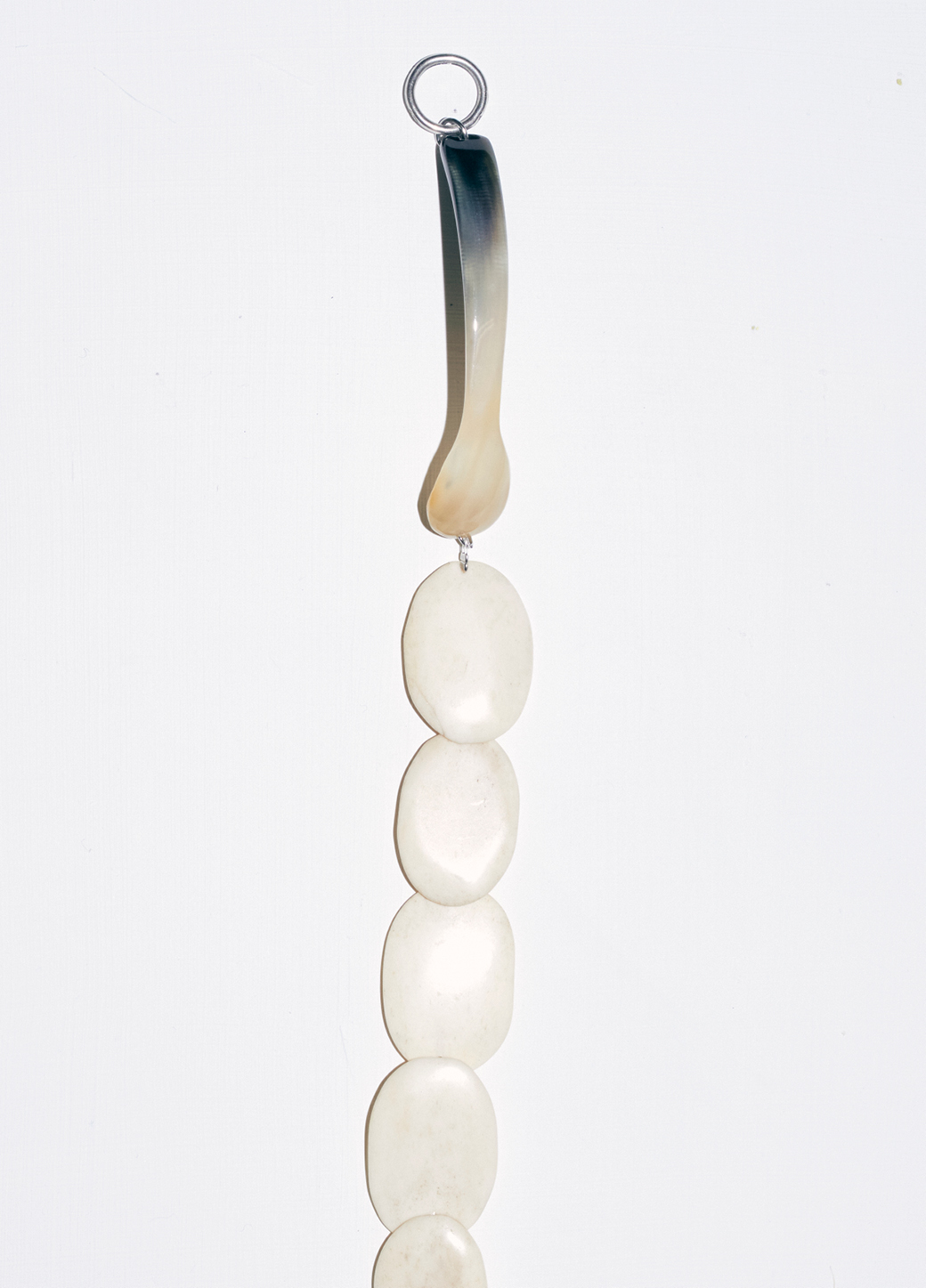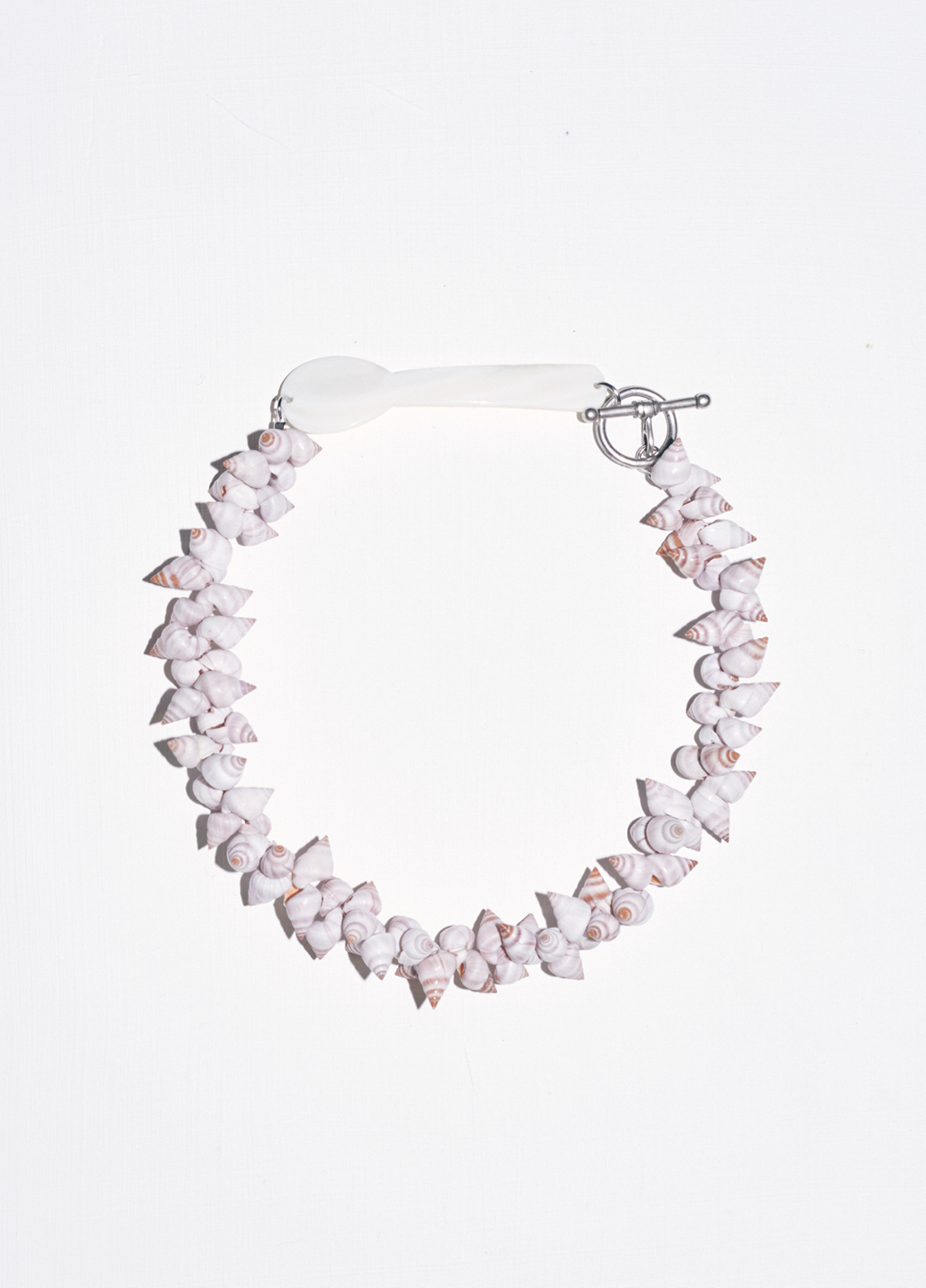 Le collier FRUTTUOSO est composé d'une cuillère en argent et de coquillages colorés vintage.