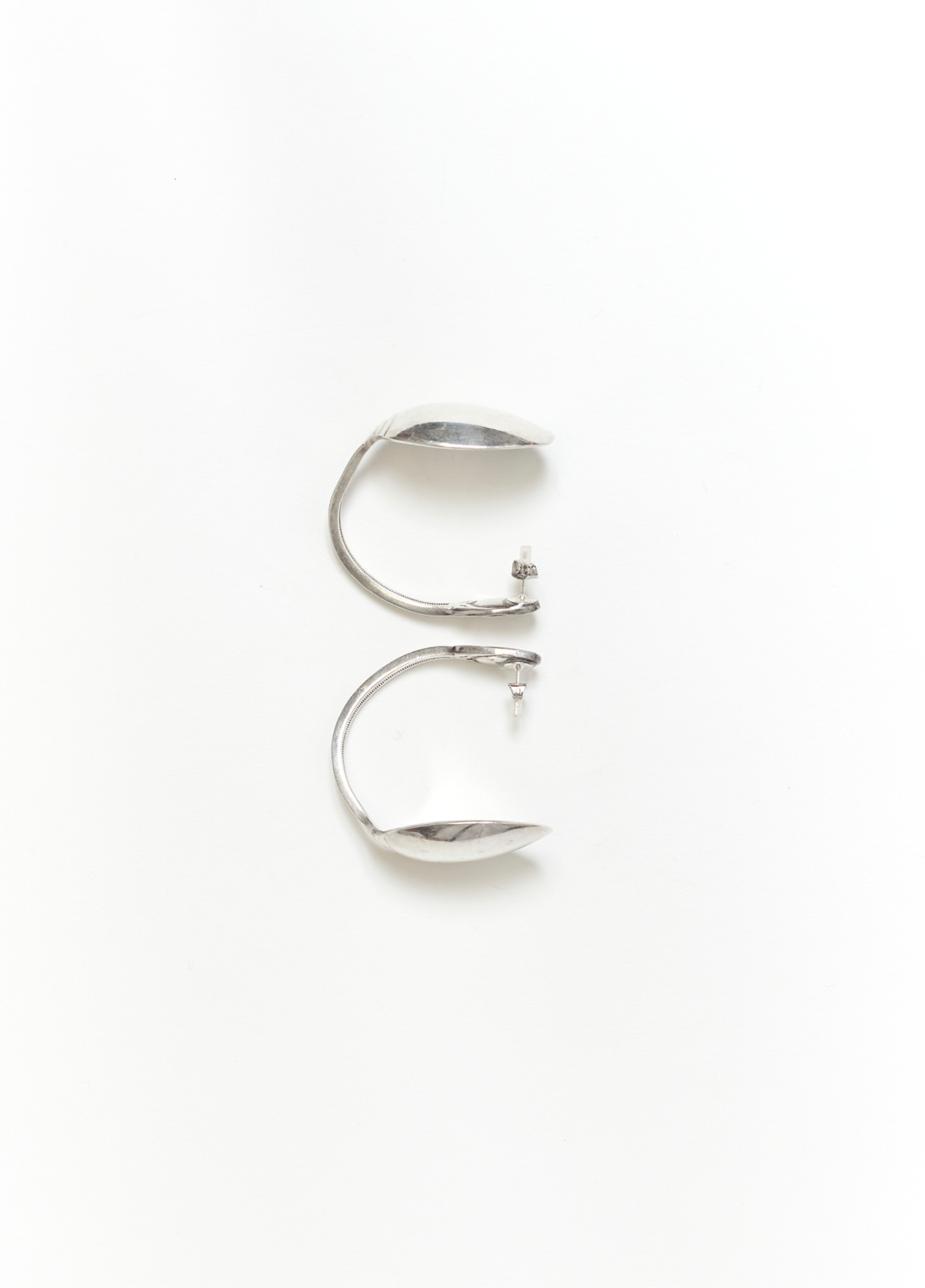 Les boucles d’oreilles créoles LATINA sont composées de cuillères anciennes à moka en argent.