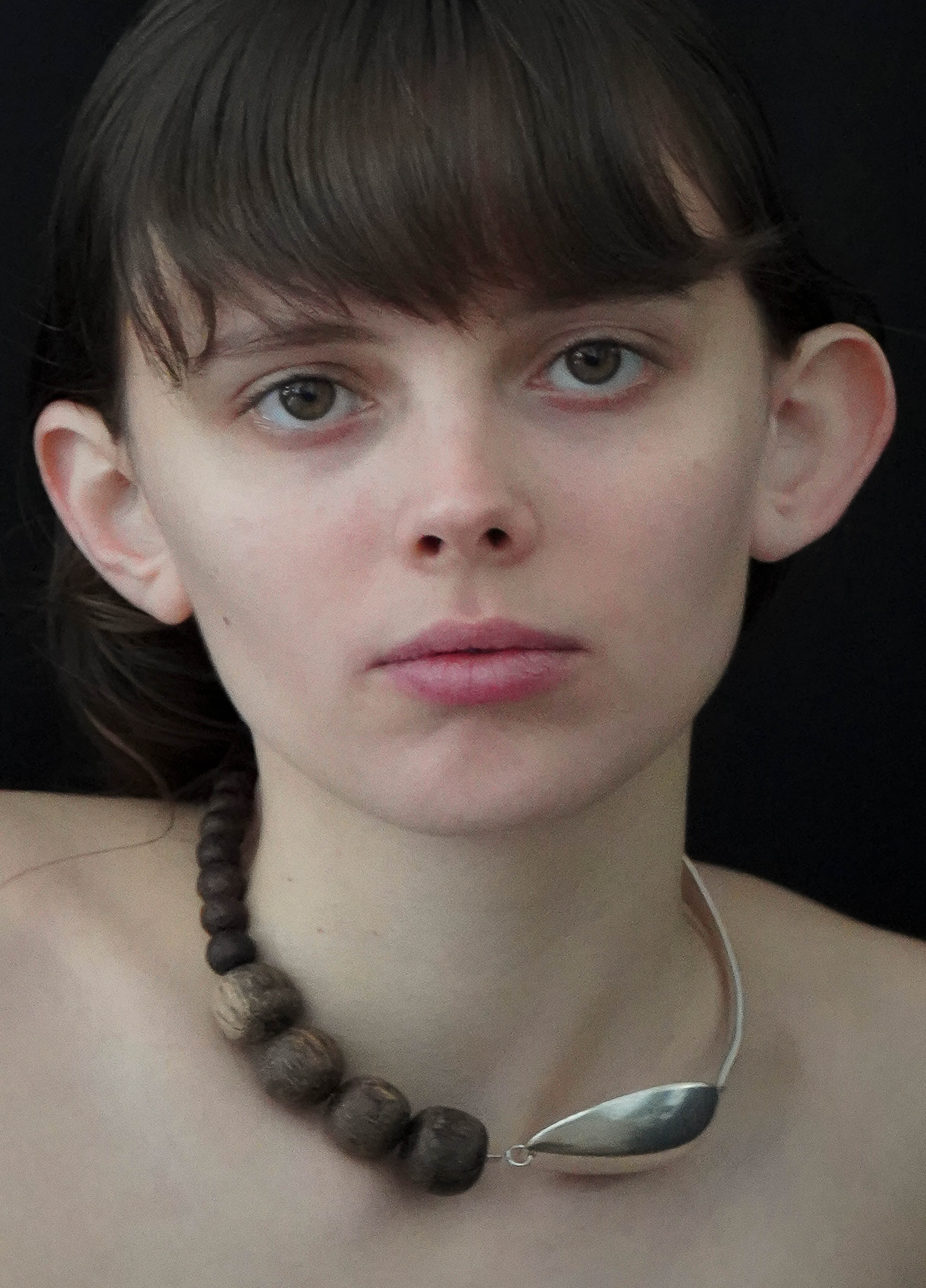 Le collier MATERA est composé d'une cuillère ancienne en argent et de perles vintage en bois.