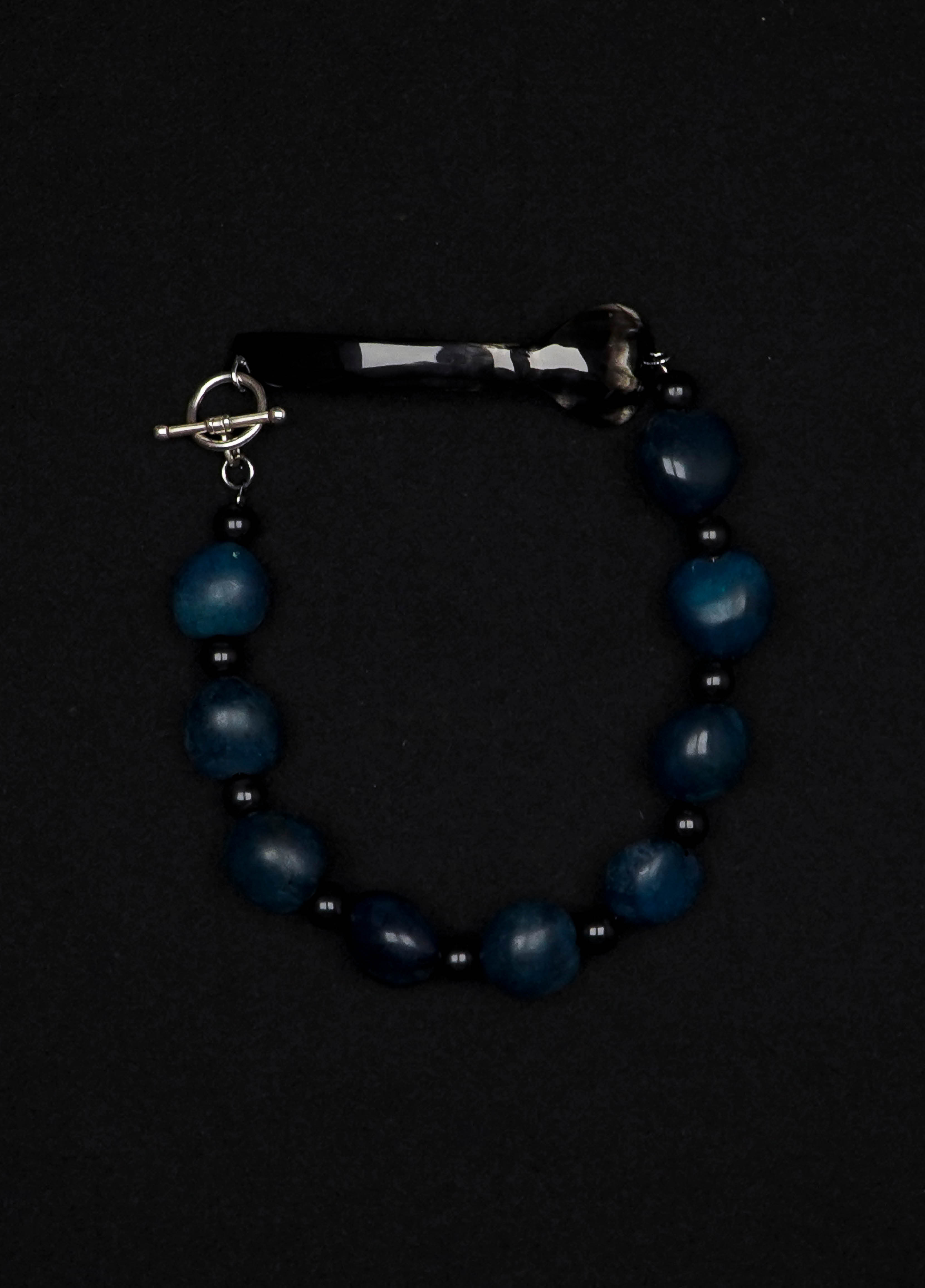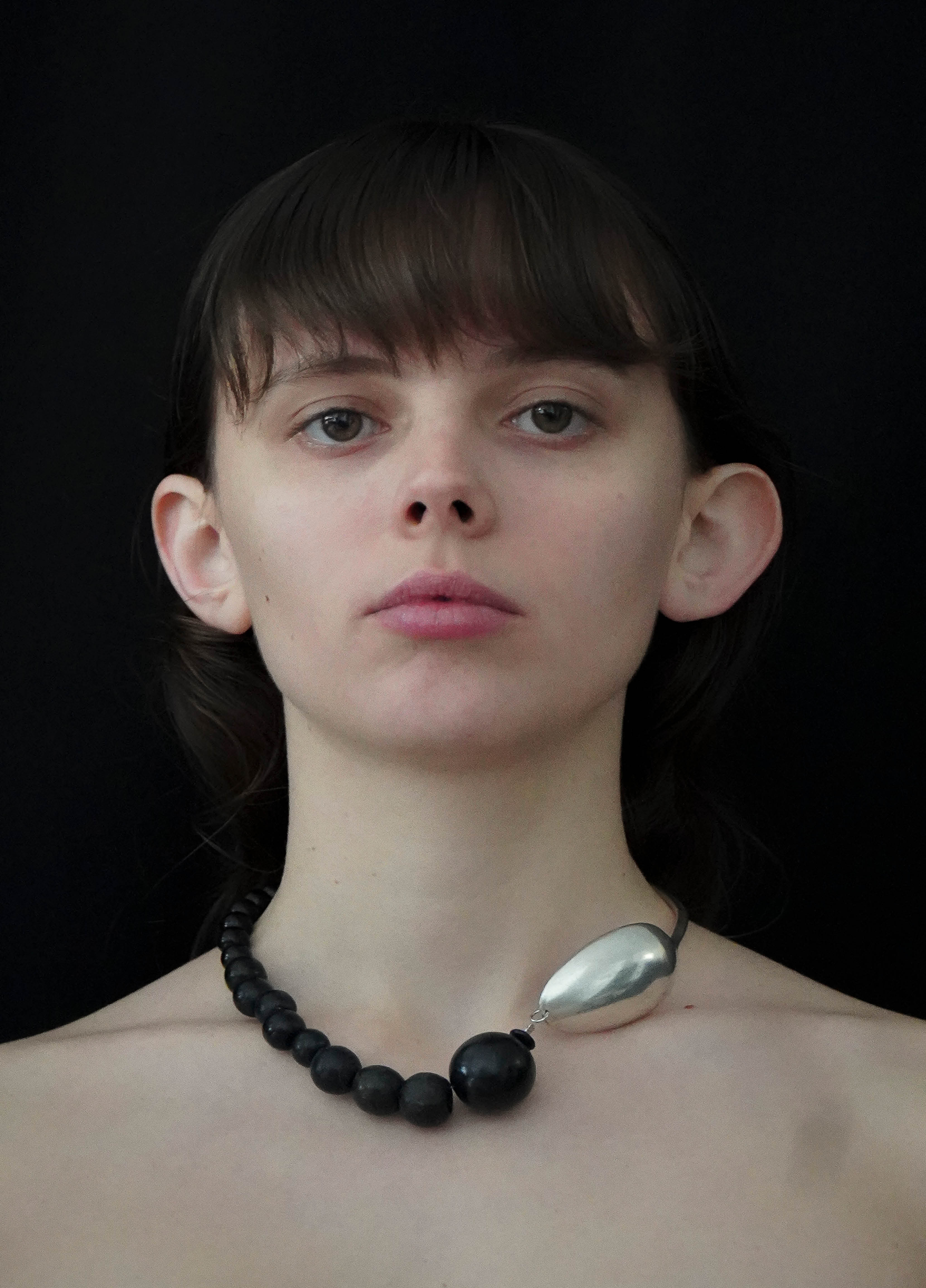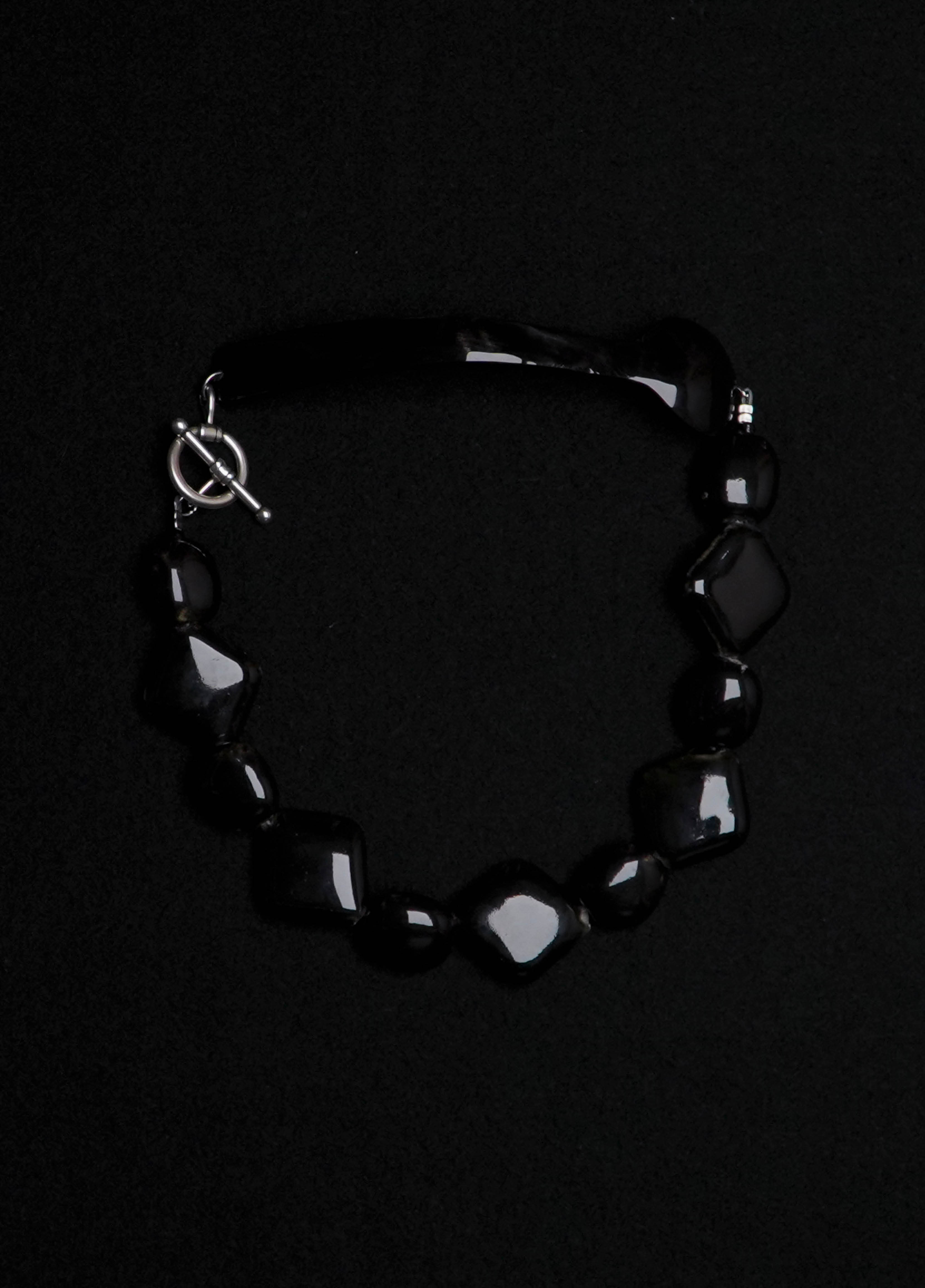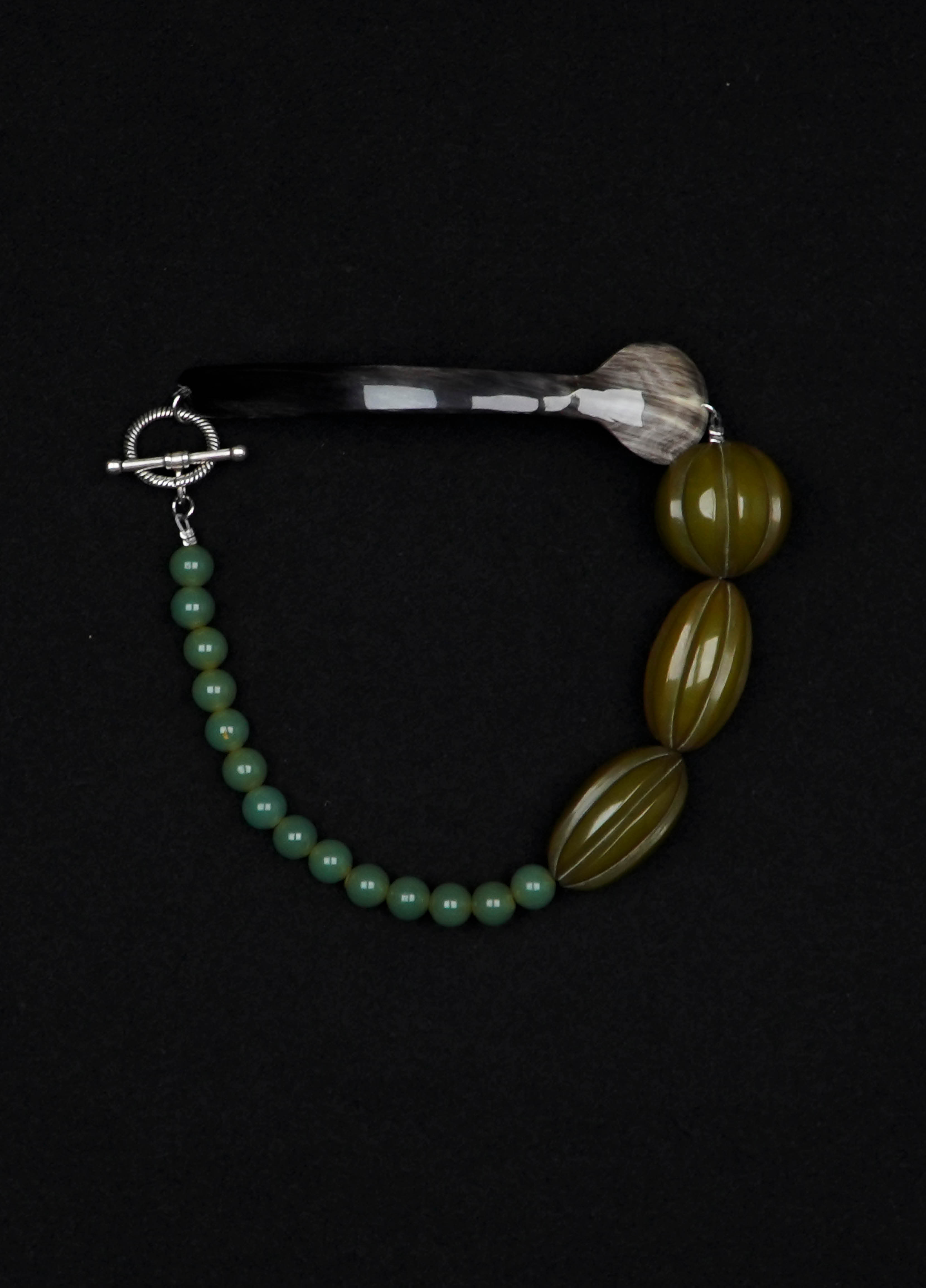 Le collier TRIESTE est composé d'une cuillère ancienne en argent et de perles vintage en bois noir.