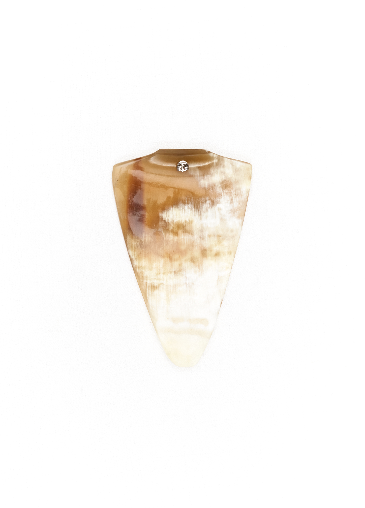 La boucle d'oreille POINTE CARREL est composée d'une pelle à tarte ancienne en corne de zébu.