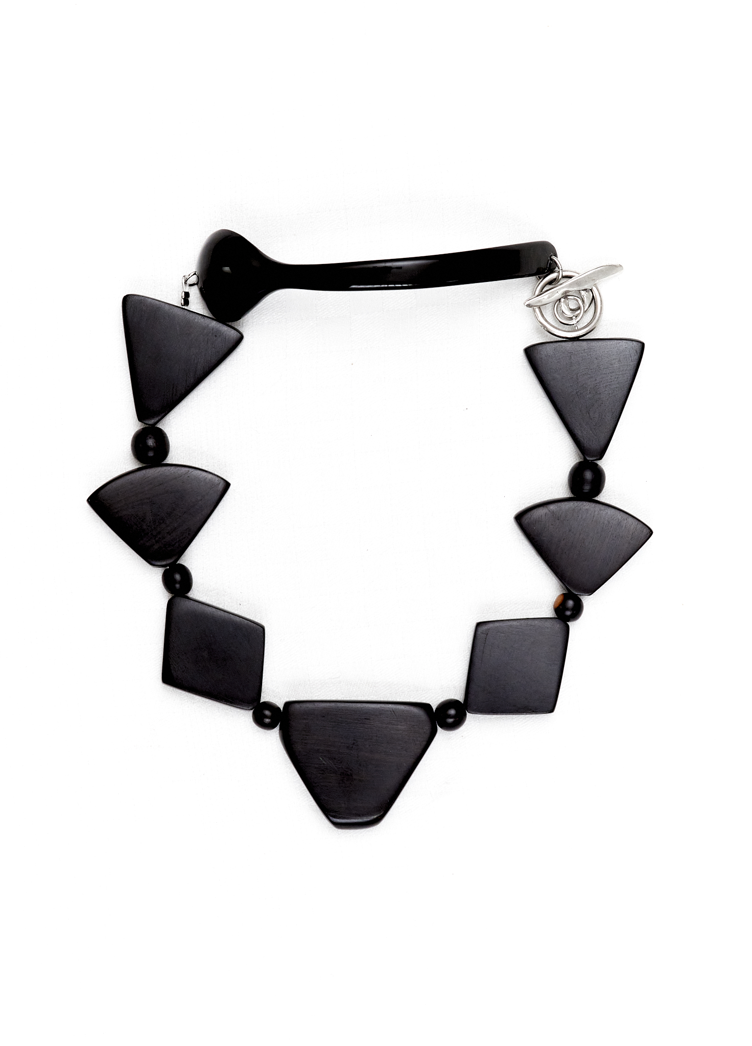 Le collier MONTE AMBIN est composé d'une cuillère ancienne en corne de zébu provenant de Madagascar, tordue à Paris par un artisan.