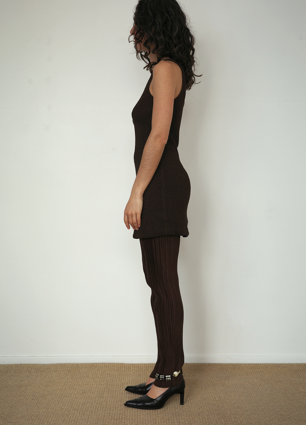 Le bracelet de cheville Uzzo est composé d’une cuillère ancienne en corne de zébu, provenant de Madagascar et tordue à Paris par un artisan. Les perles vintage sont en corne.