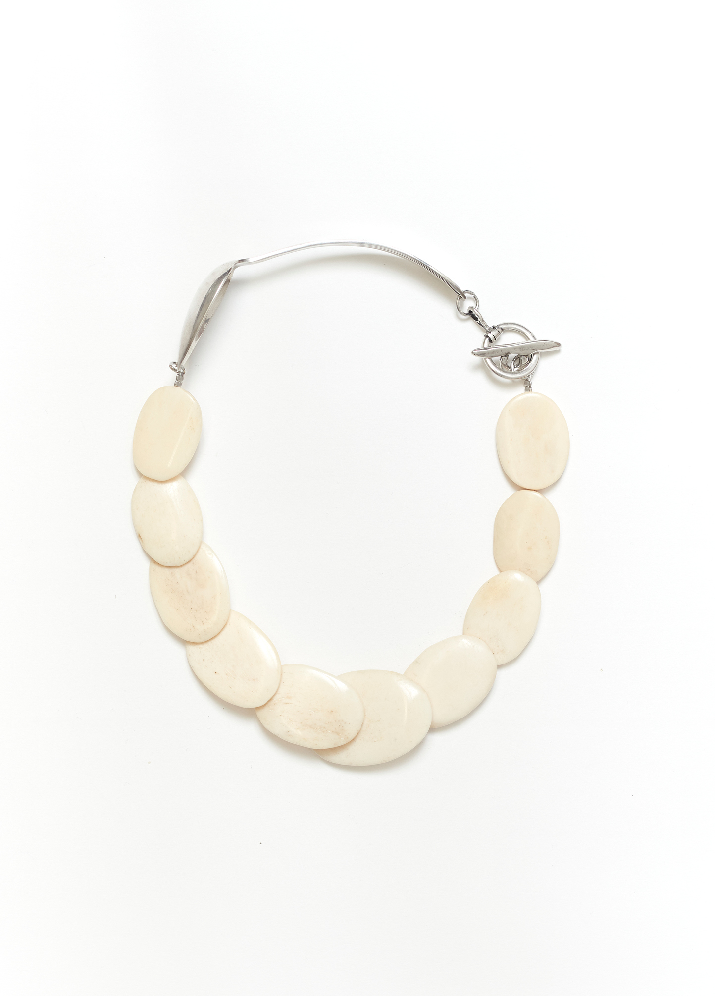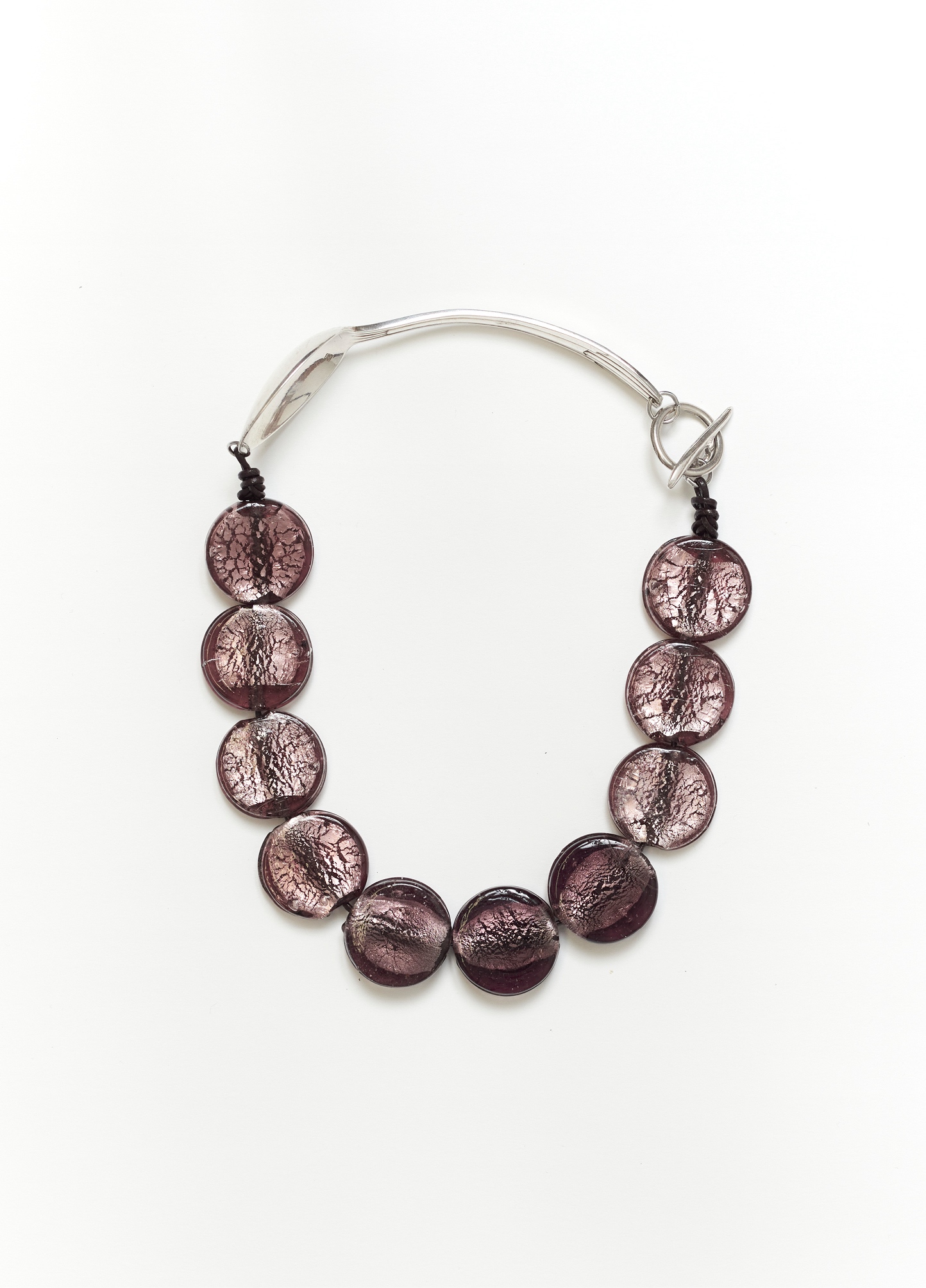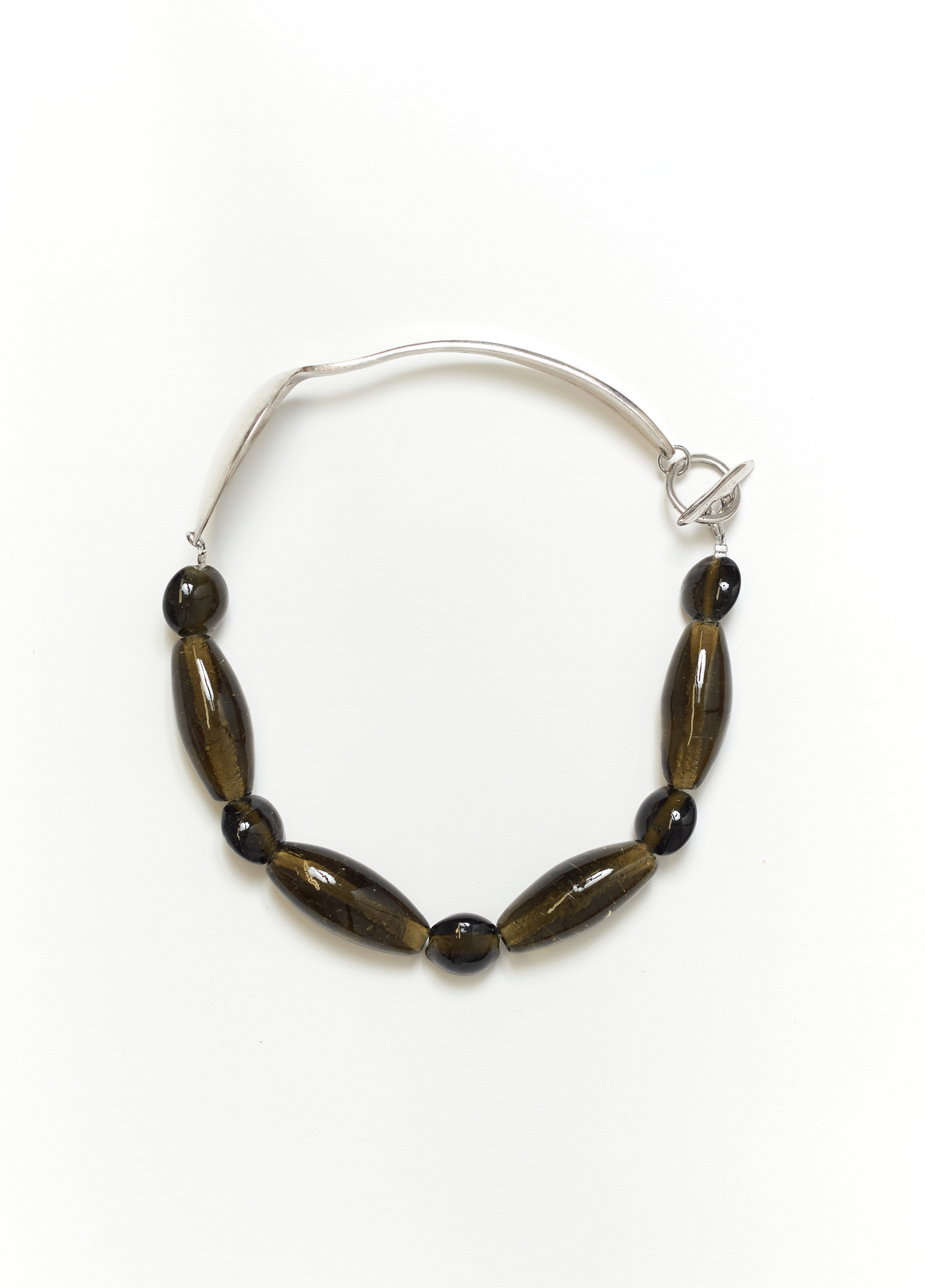 Le collier Severa est composé d’une cuillère ancienne en argent. Les perles vintage sont en verre.