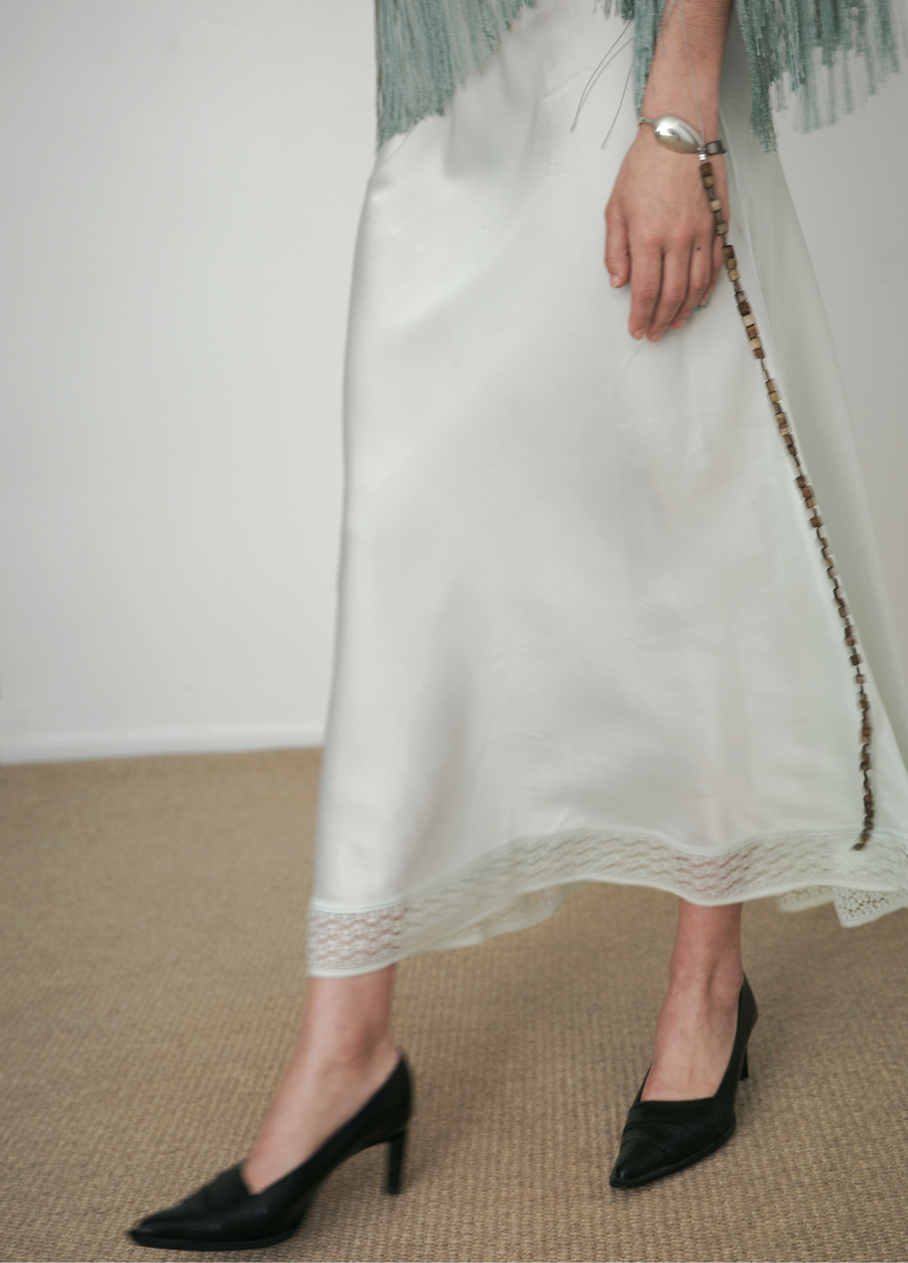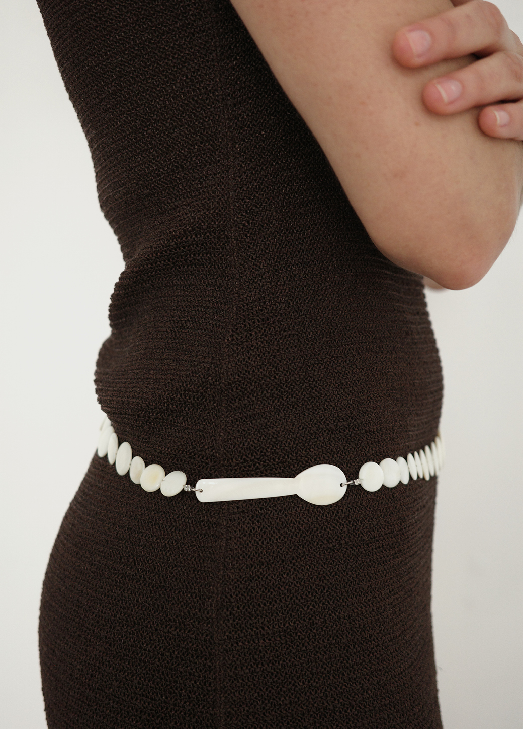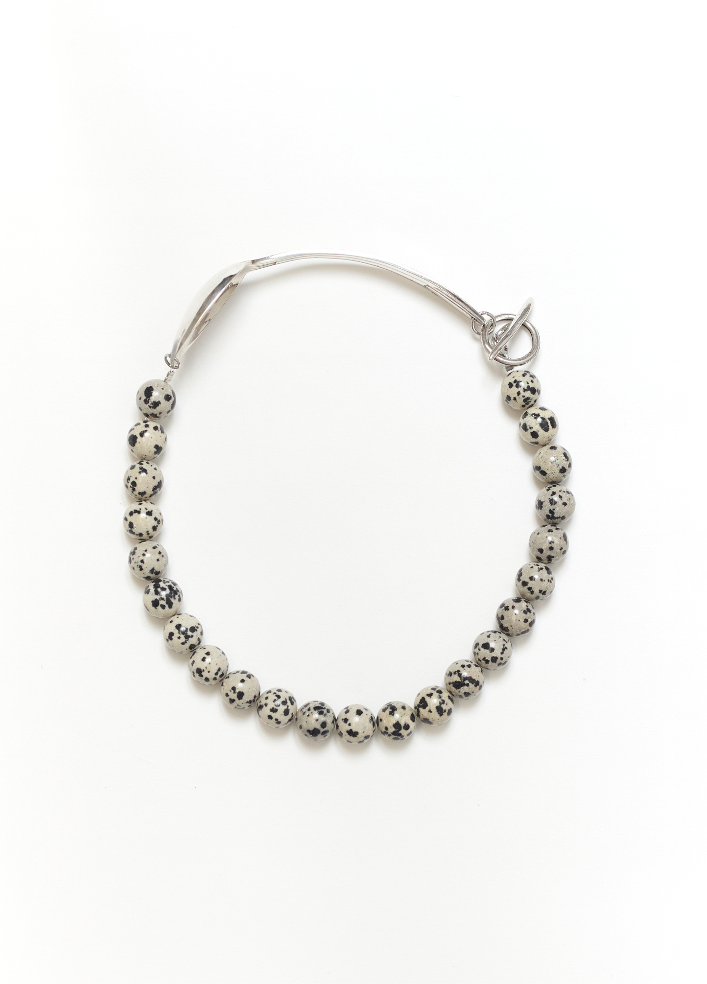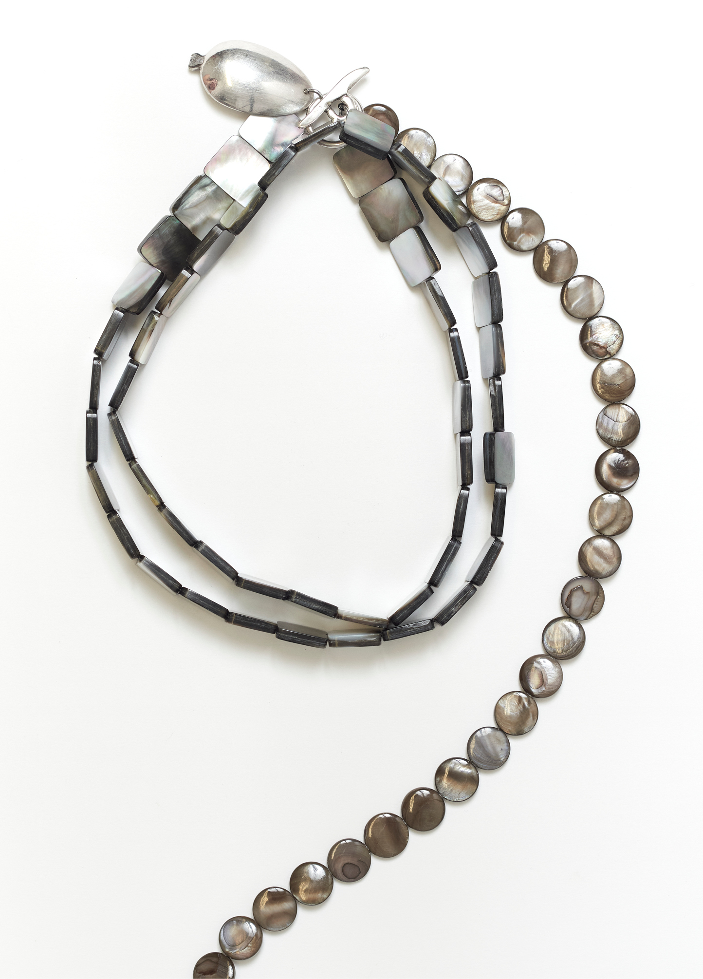 Le collier Severa est composé d’une cuillère ancienne en argent. Les perles vintage sont en verre.