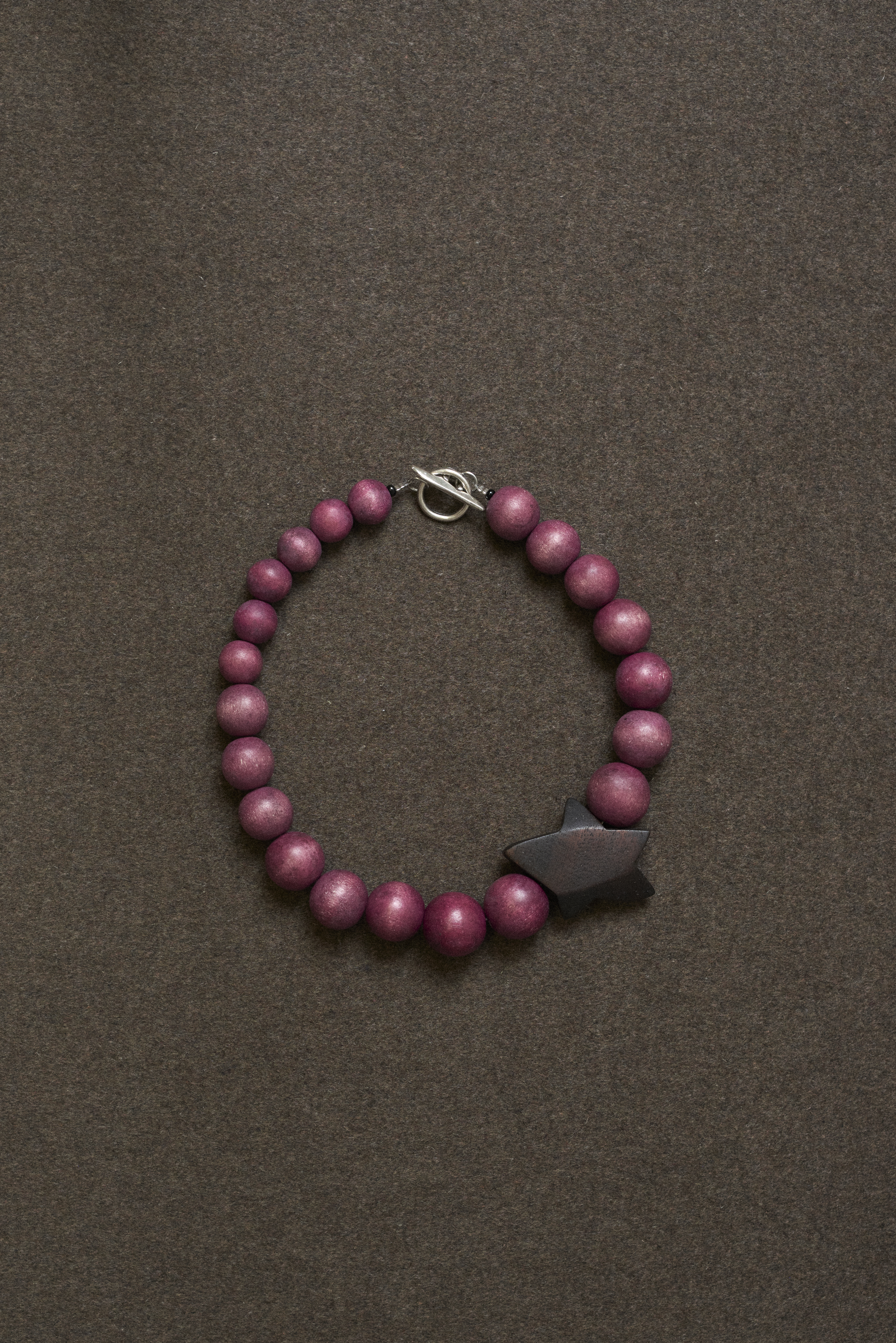 Le collier Alicante unique est composé de perles en bois vintage soigneusement sélectionnées, sublimées par une étoile en bois sculptée à la main par l'artiste Margot Lacombe . L'étoile en bois prend la place de la cuillère dans cette collaboration.