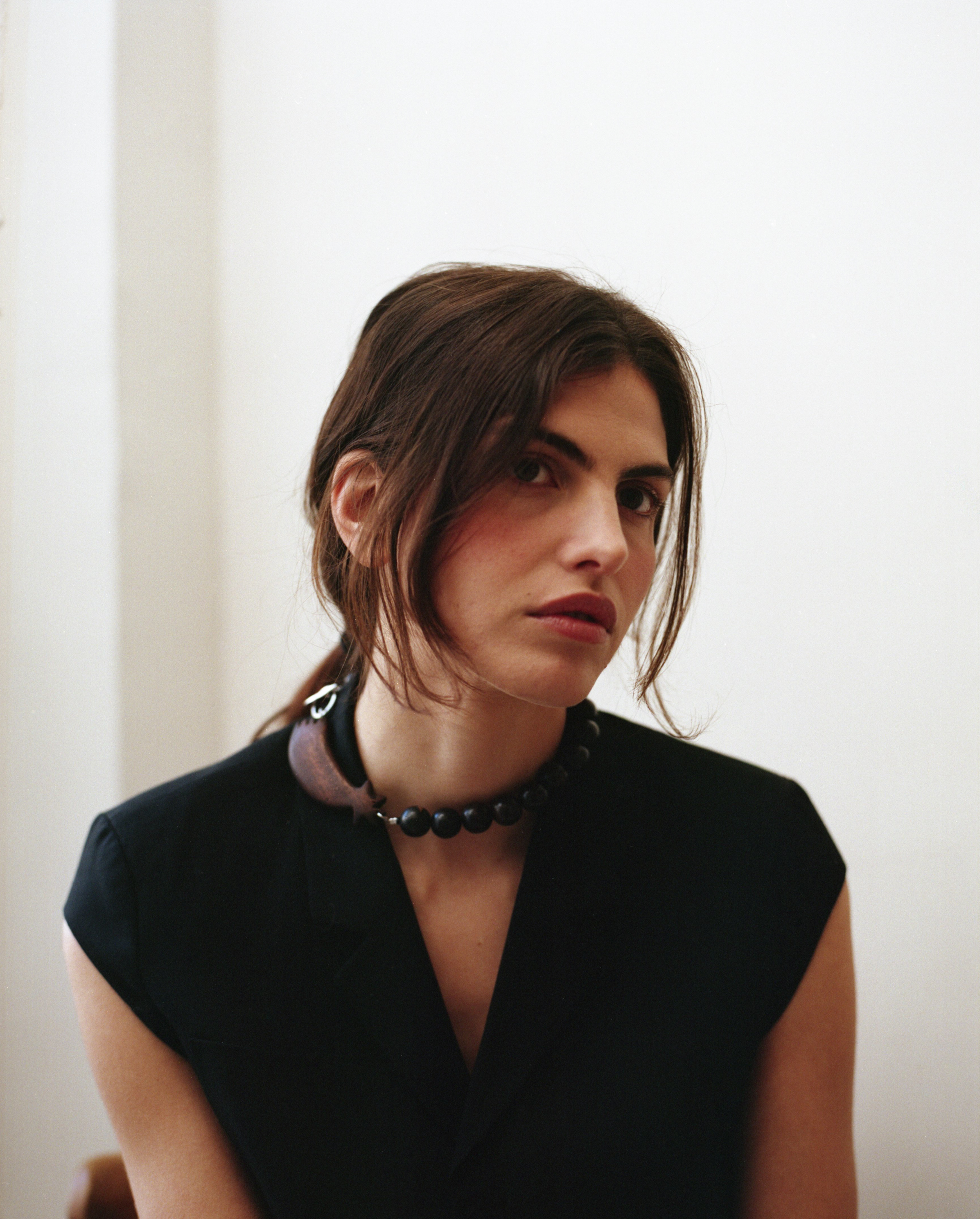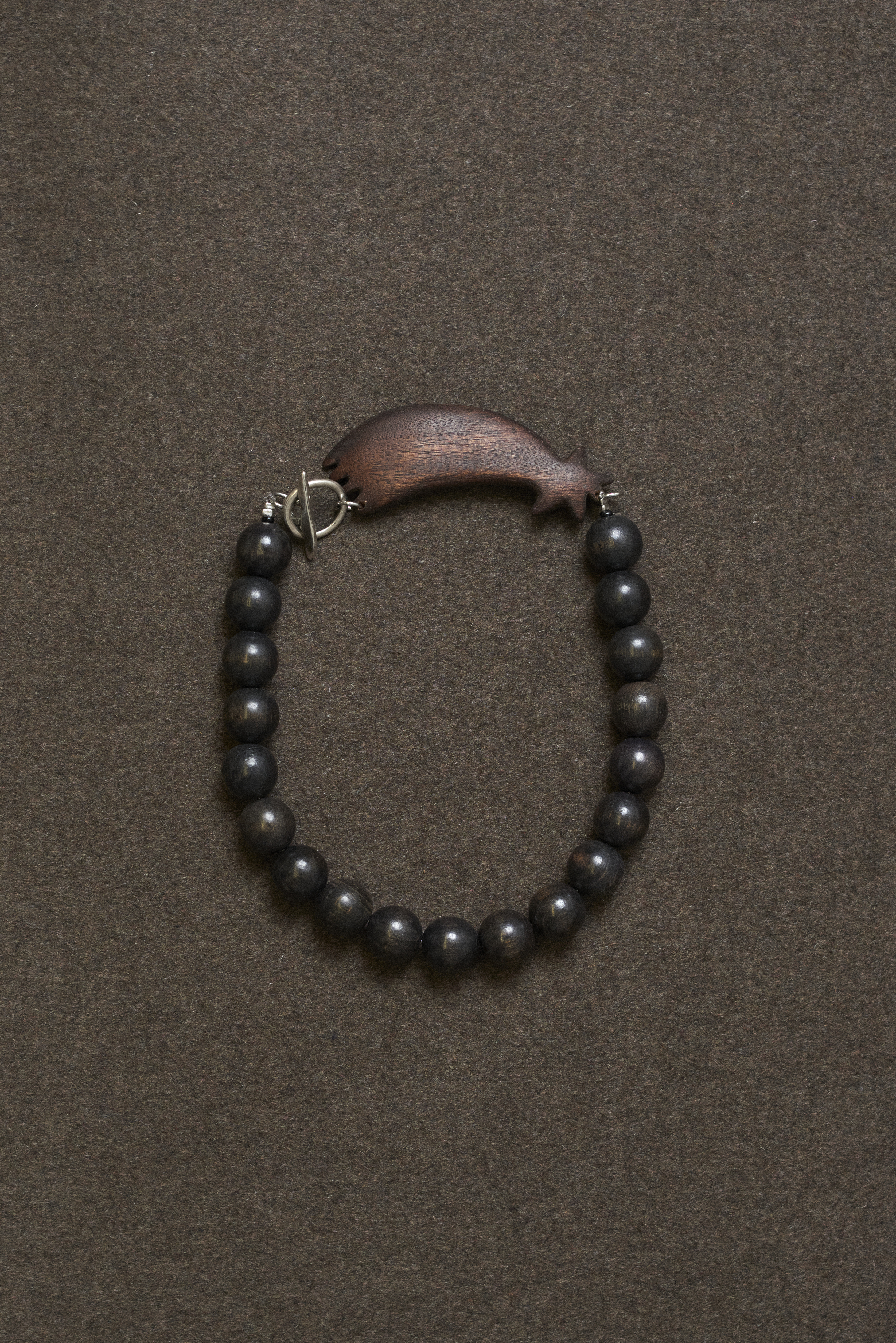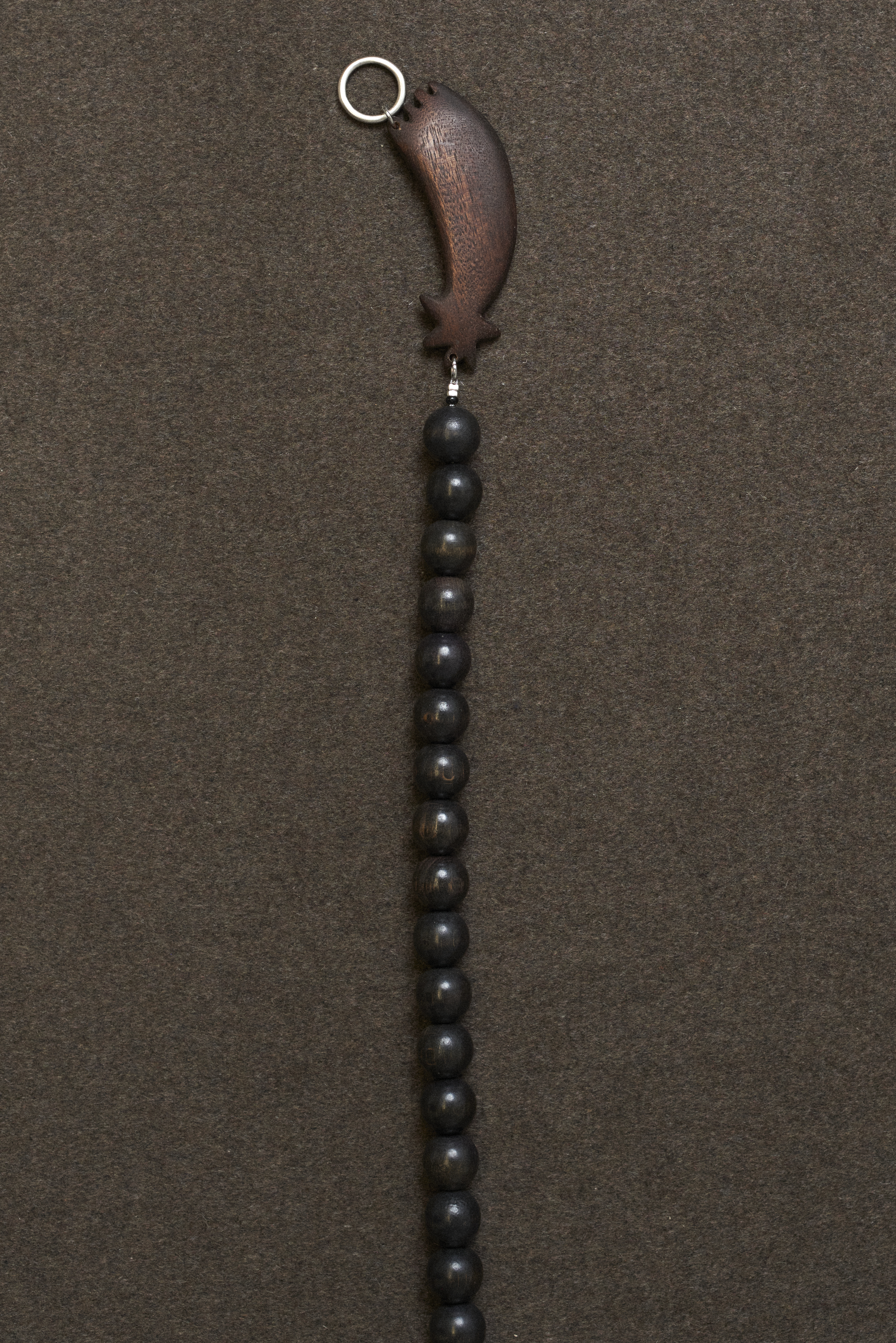 Le collier Grenade unique est composé de perles en bois vintage soigneusement sélectionnées, sublimées par une étoile en bois sculptée à la main par l'artiste Margot Lacombe . L'étoile en bois prend la place de la cuillère dans cette collaboration.