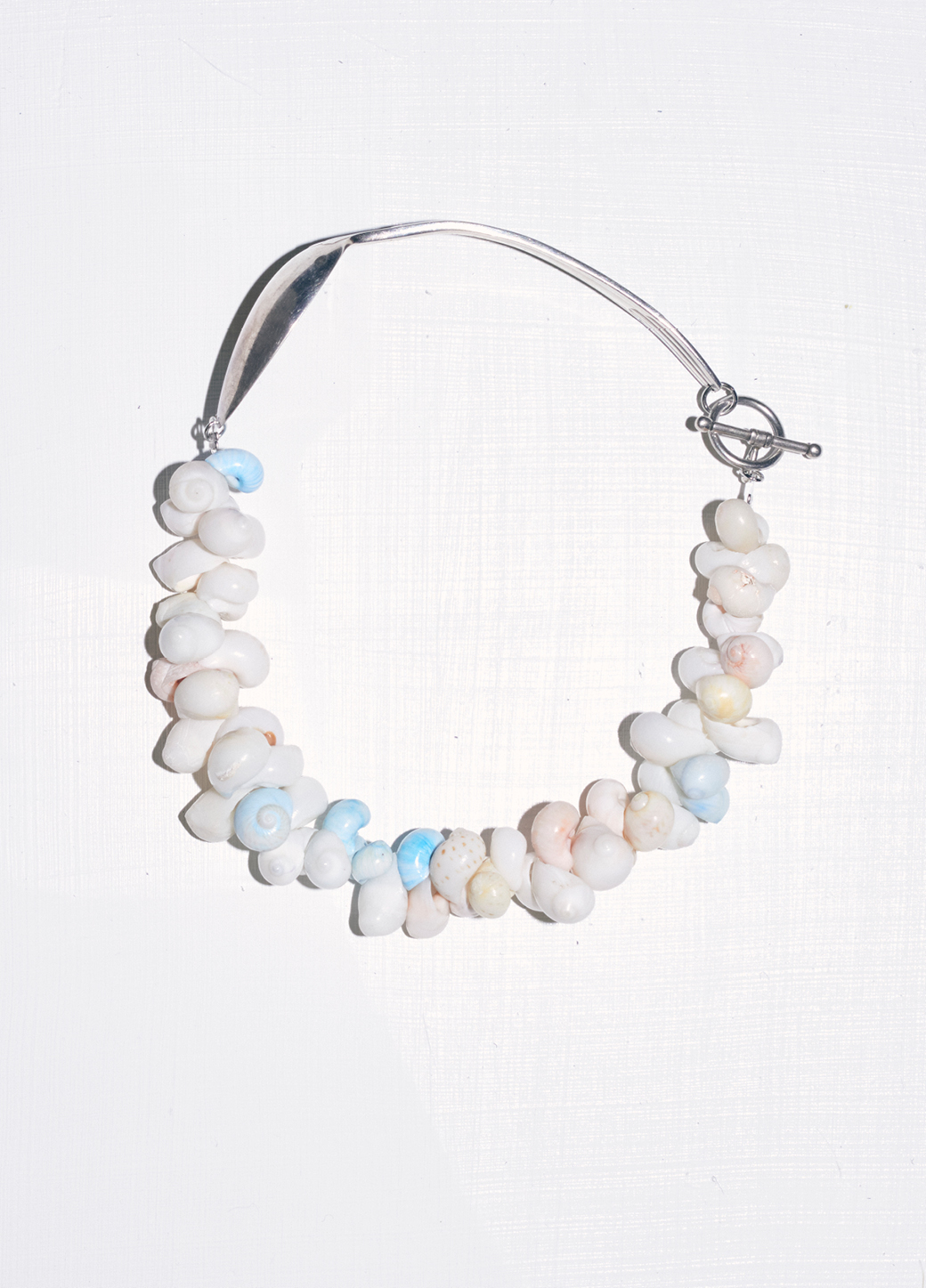 Le collier FRUTTUOSO est composé d'une cuillère en argent et de coquillages colorés vintage.