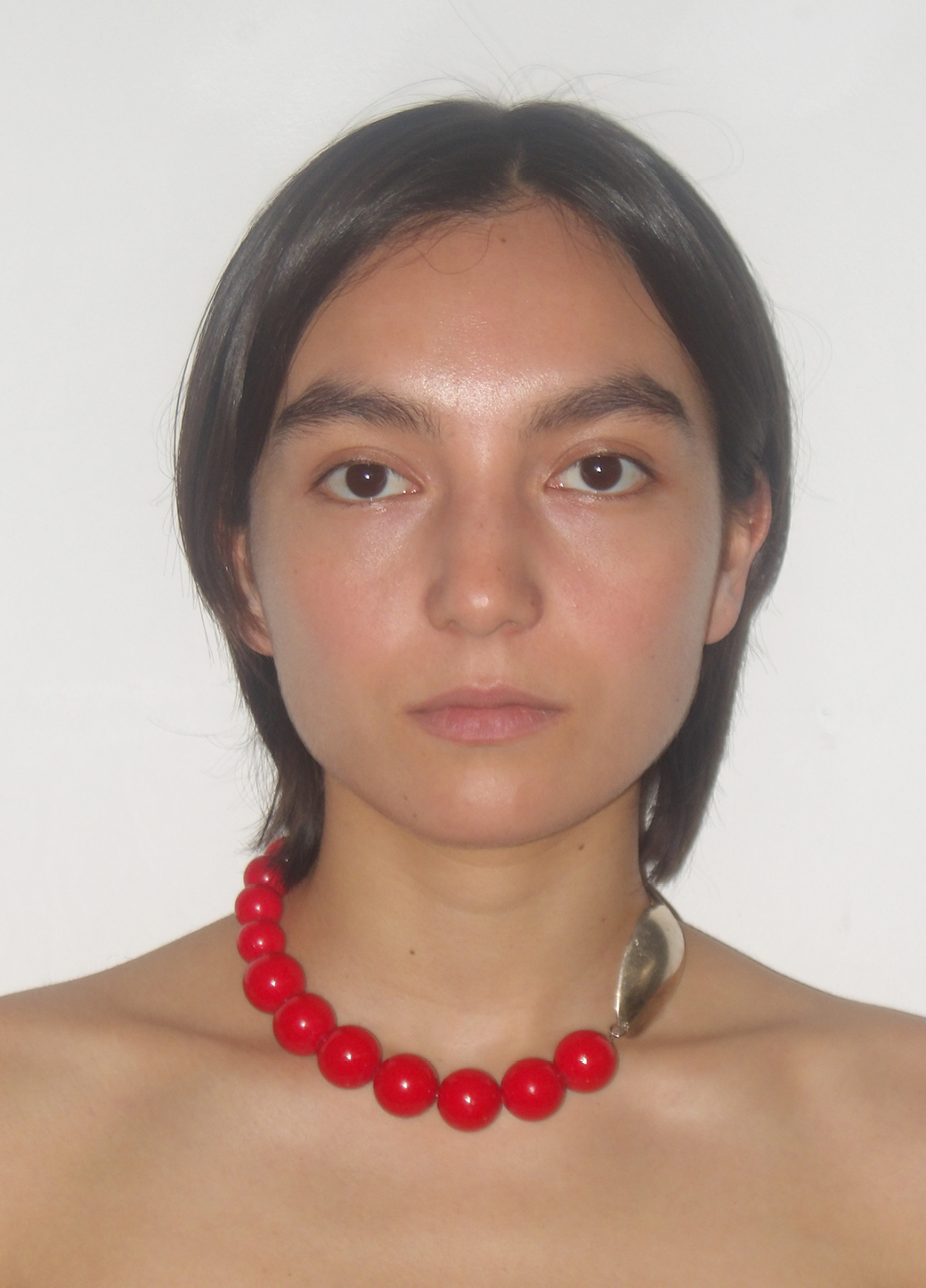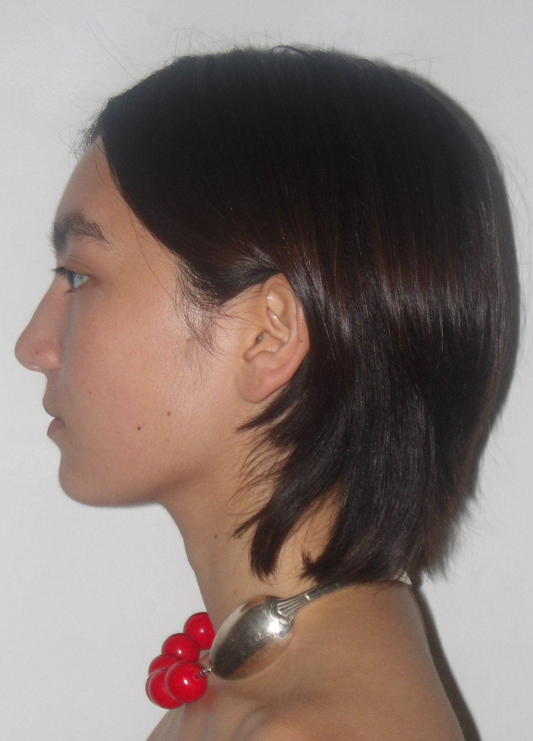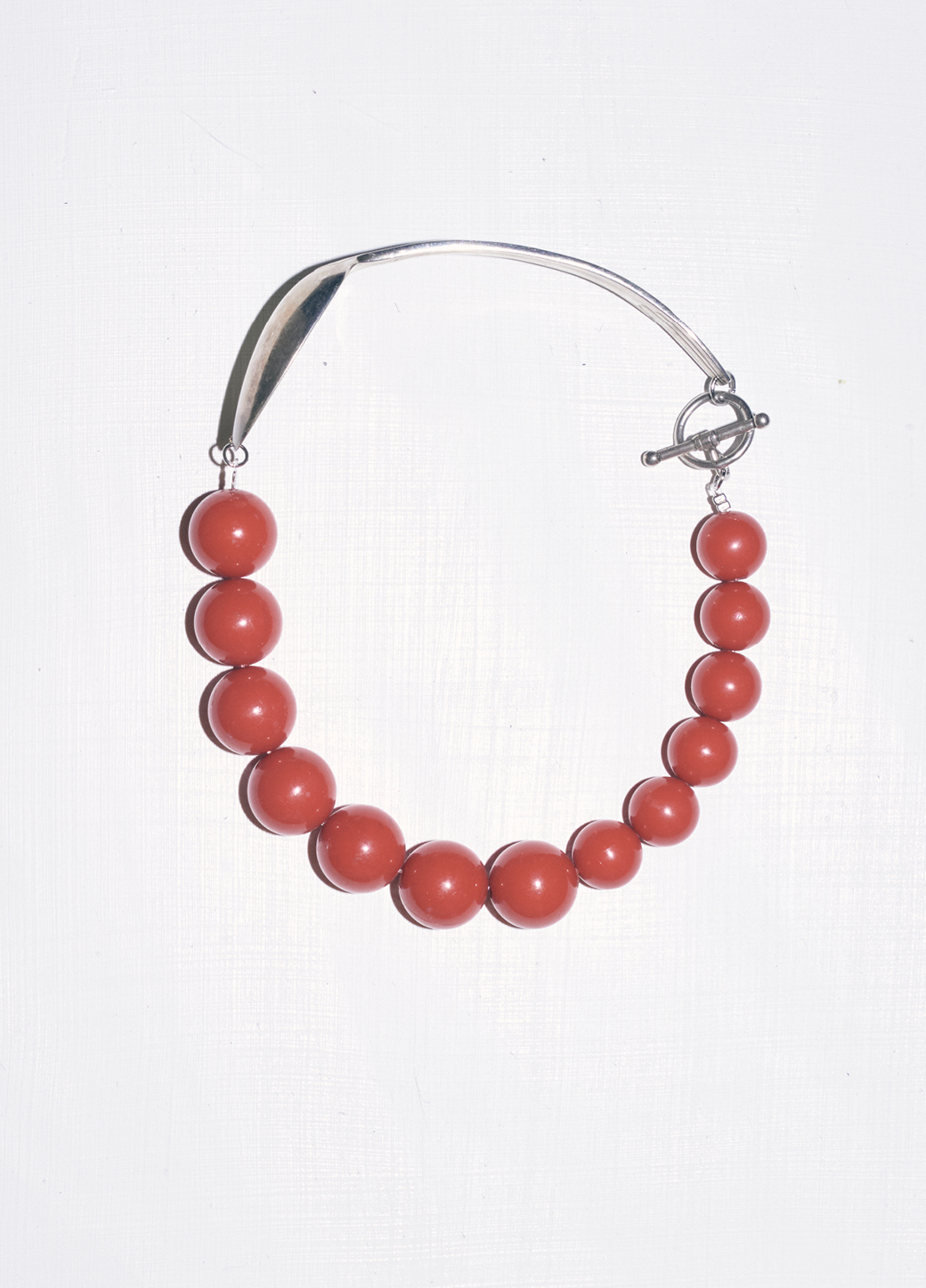 Le collier SIROLO est composé d'une cuillère en argent et de perles en acétate rouge vintage.