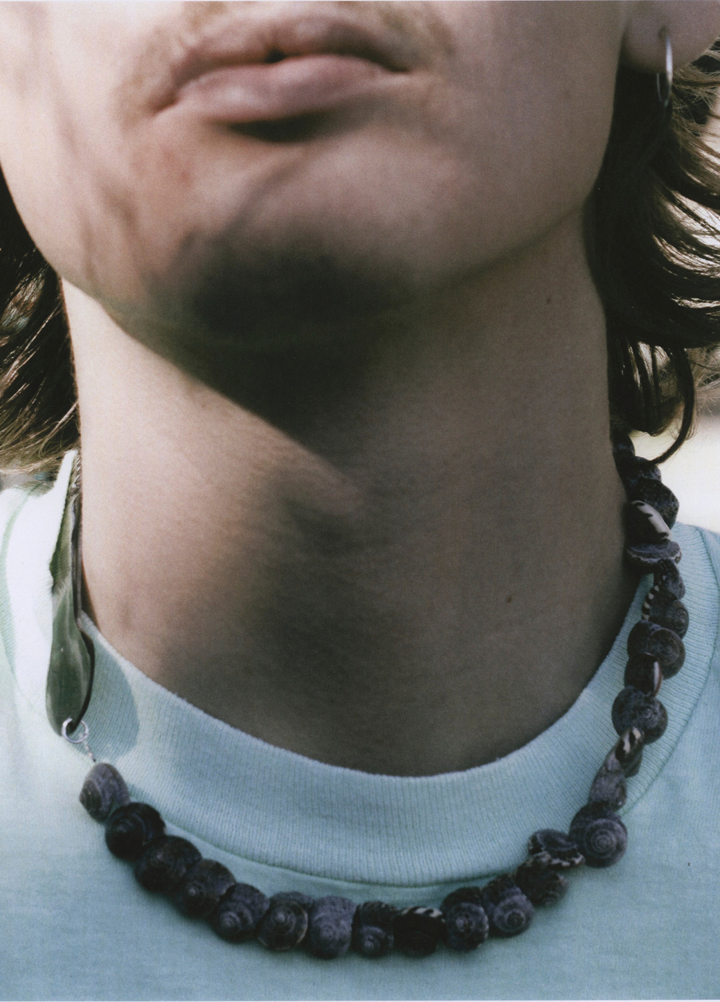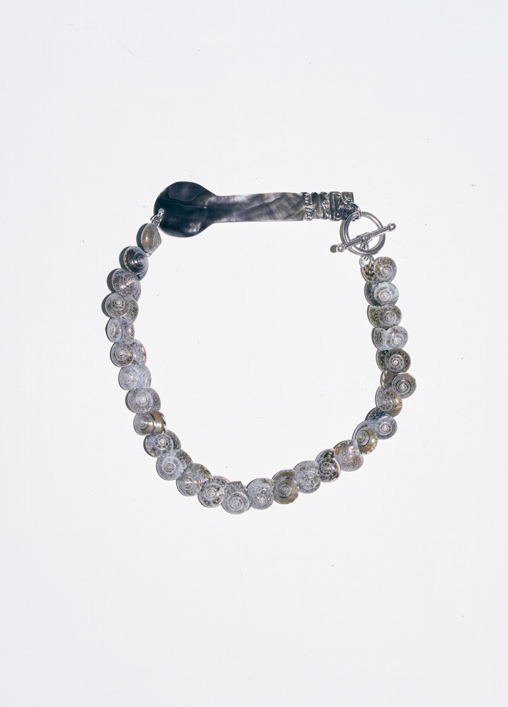 Le collier SPALMATORE est composé d'une cuillère tahitienne en nacre.