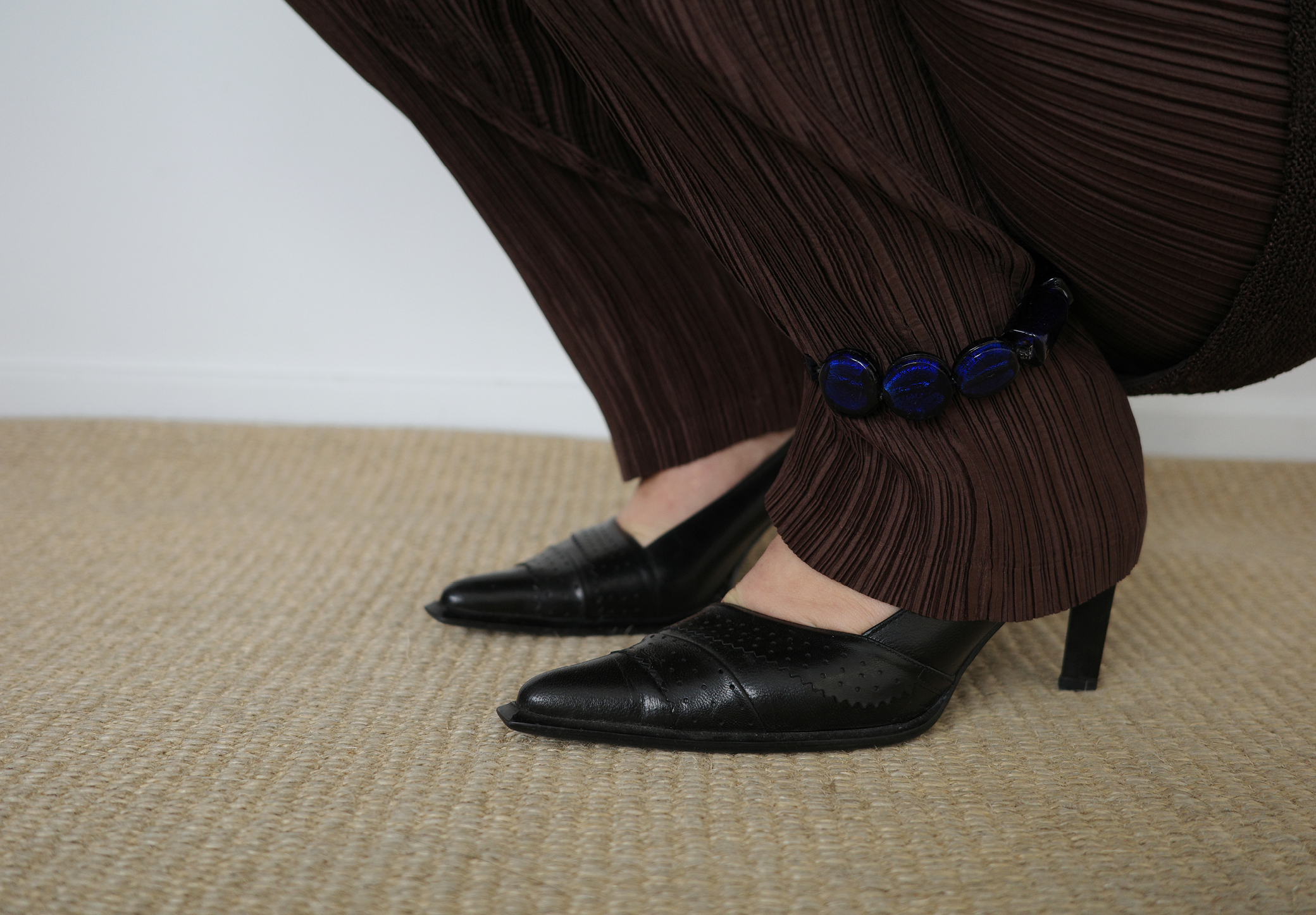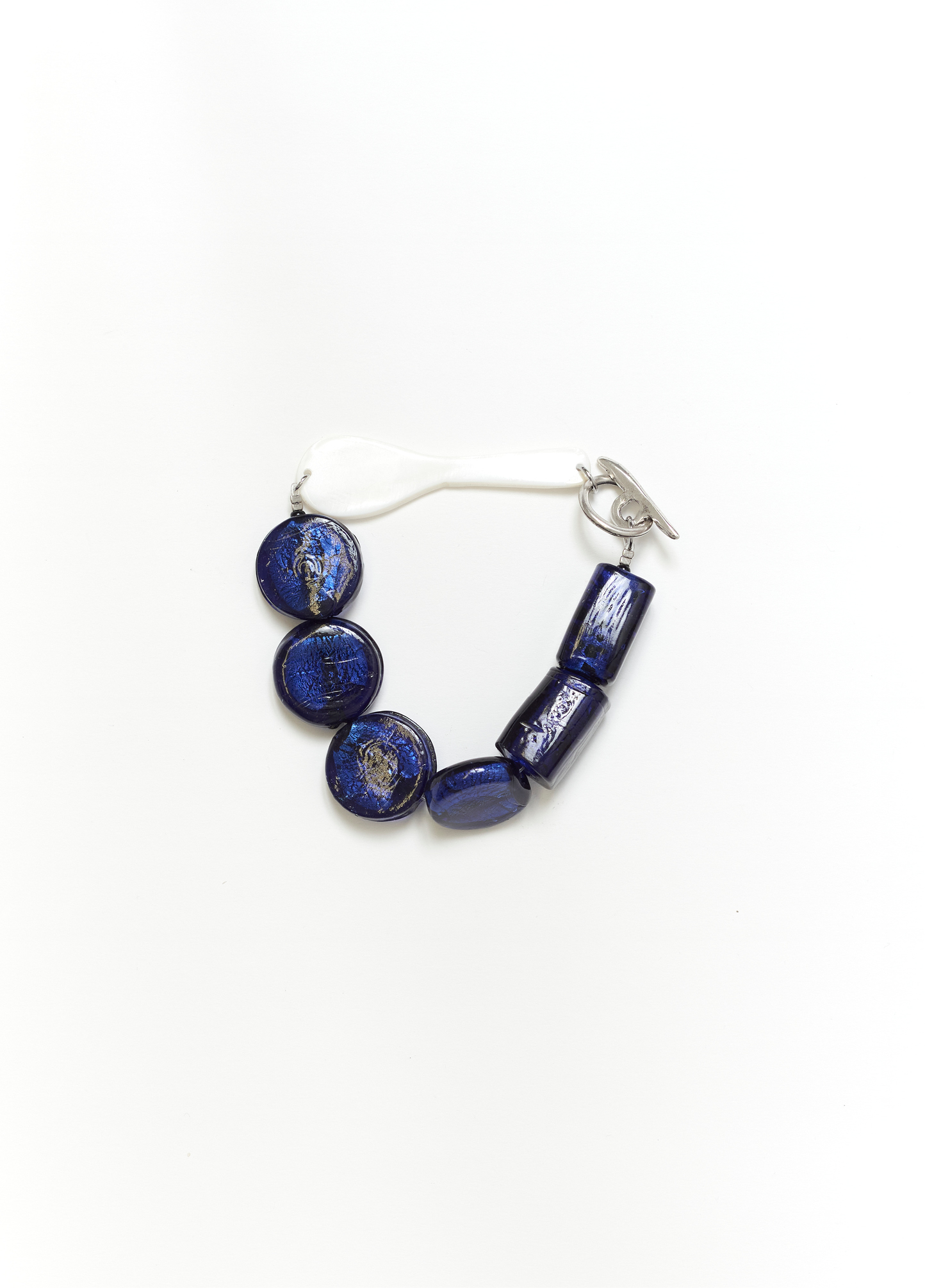 Le bracelet de cheville Forno est composé d’une cuillère ancienne en nacre. Les perles vintage sont en verre.