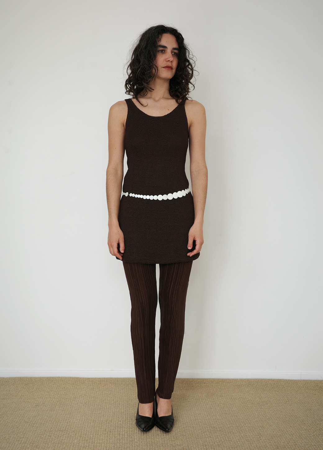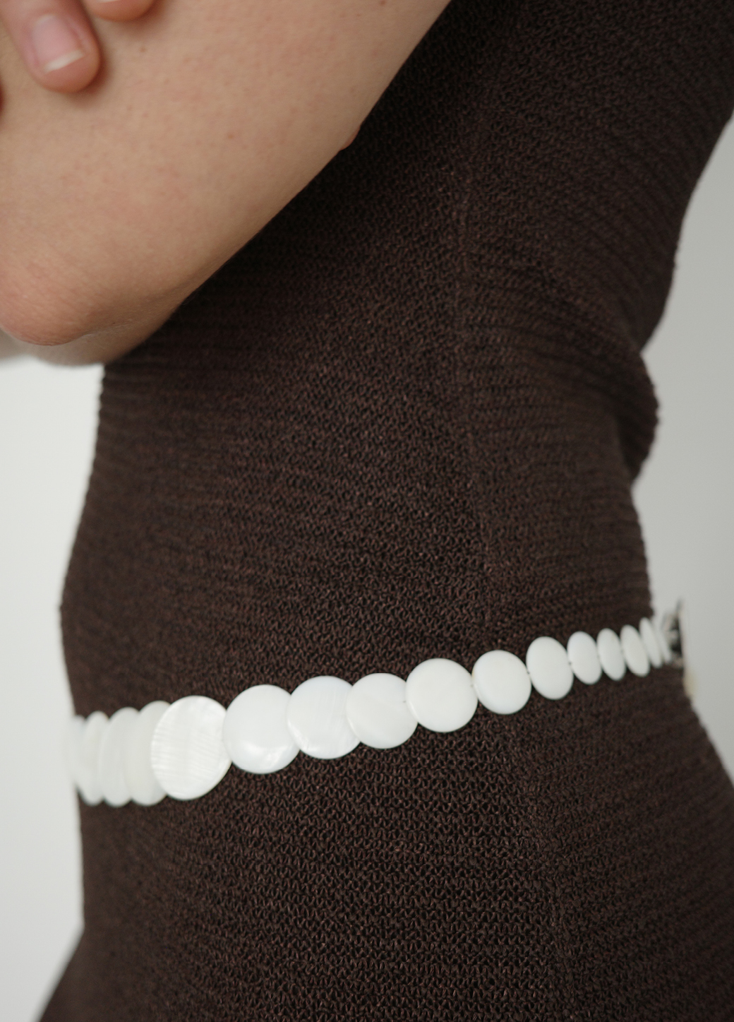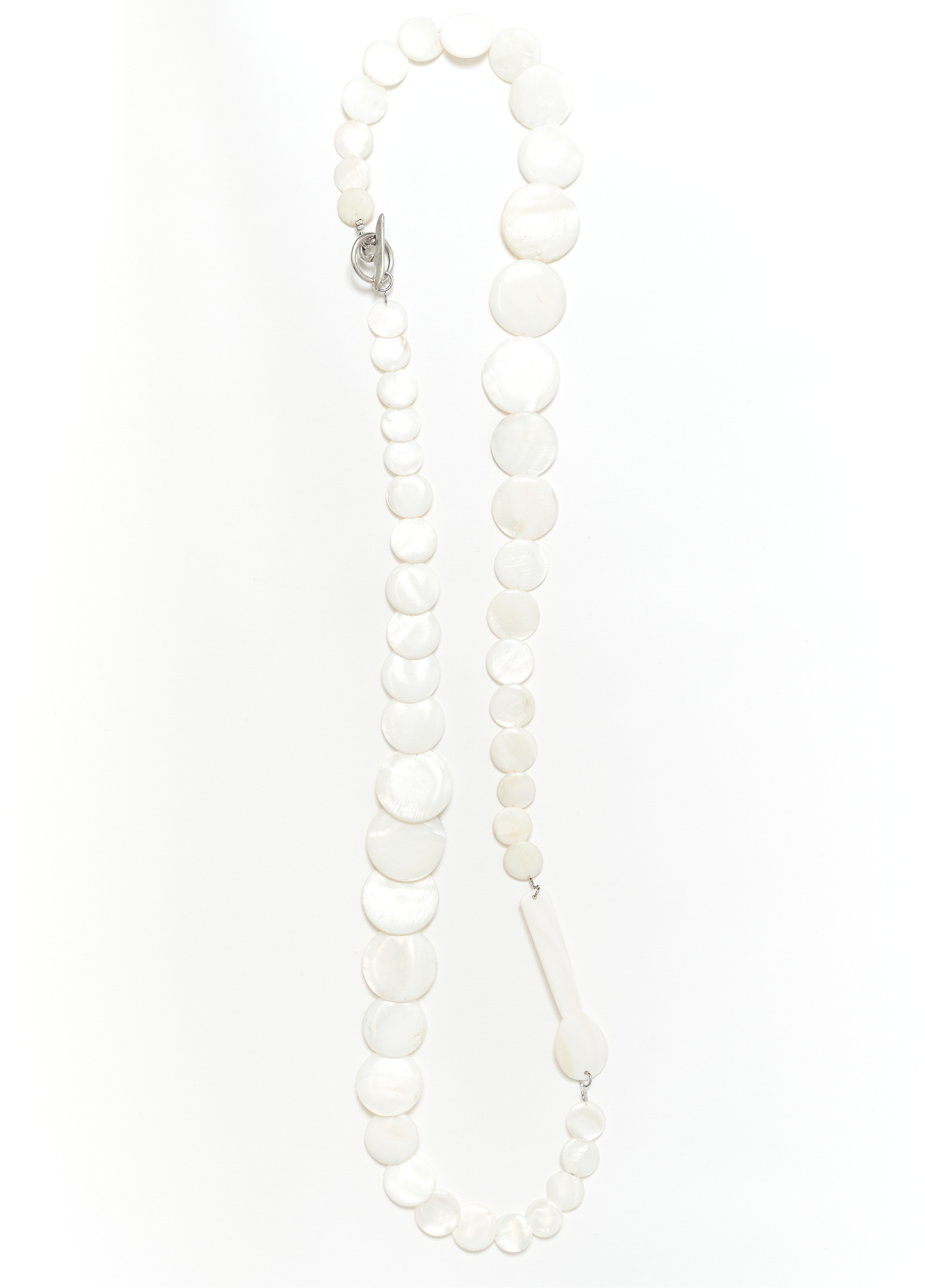 Le collier de ventre Poltu Casu est composé d’une cuillère ancienne en nacre. Les perles vintage sont en nacre.