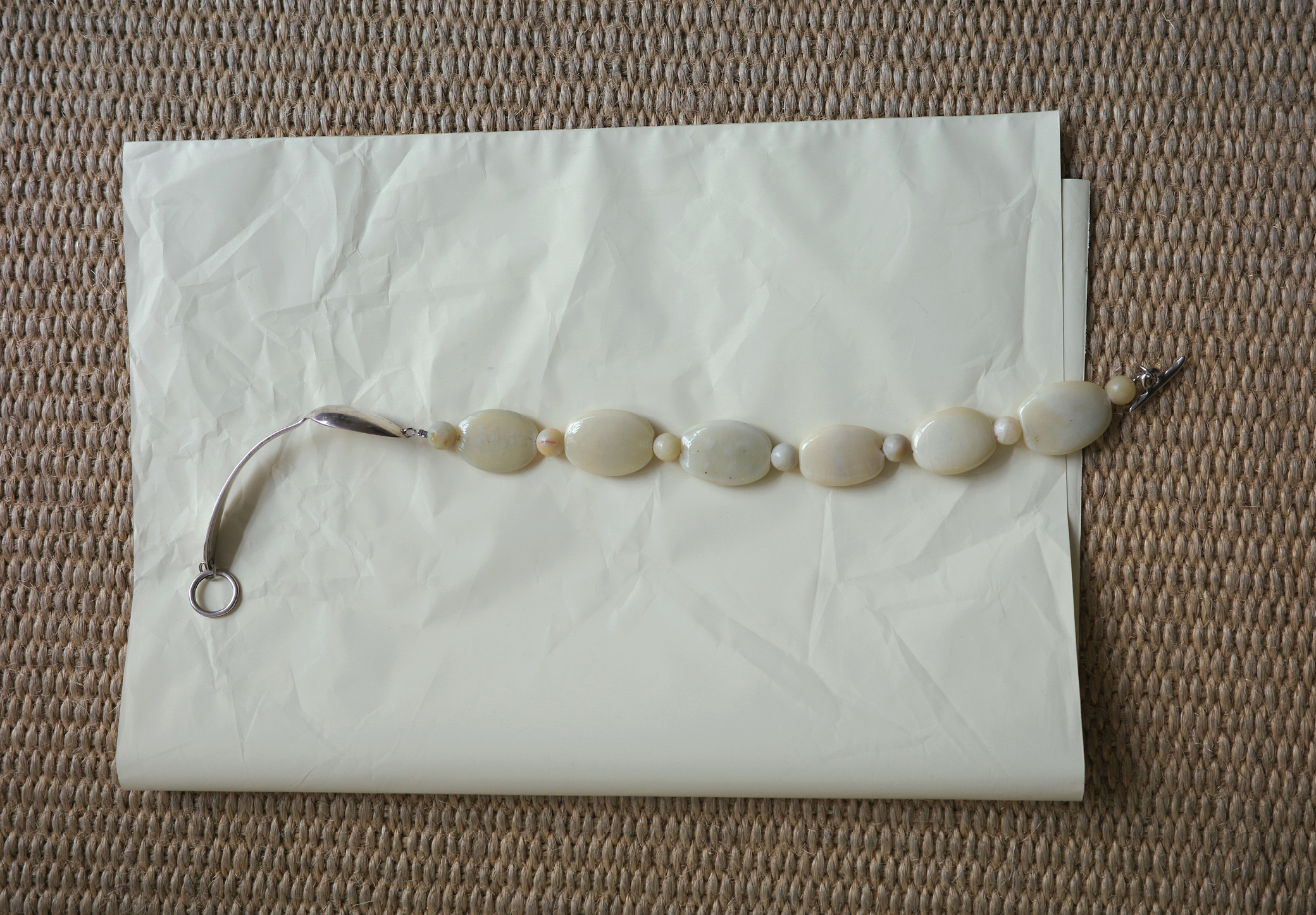 Le collier Isola Bella est composé d’une cuillère ancienne en argent. Les perles vintage sont en verre.